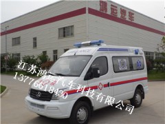 配置介紹:1、長條LED100W藍色救護車專用示意燈;2、8塊方塊閃爍燈(急救閃爍,告知路人讓路);3、國際救護車標識;4、紅彩條;5、紅十字;6、醫院名稱彩貼;7、上車加寬踏步(方便病人上下車),8、駕駛室;9、急救室;10、中隔墻(把駕駛室與急救室分離);11、推拉窗(保持駕駛員與醫療車保持溝通,觀察情況);12、玻璃鋼一體化內飾;13、對講機;14、頂置扶手;15、換氣扇;16、輸液掛鉤;17、LED照明燈;18、藥品吊柜;19、藥品地柜;20、氧氣瓶+氧氣濕化器;21、原車座椅;22、座柜;23鏟式擔架;24、自動上車擔架;25、擔架擋板;26、LG藍色地板皮;27、滅火器;28、倒車影像;