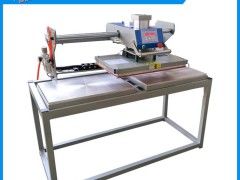 本機器的主要特點是采用上發熱板左右移動,兩個工 作平臺固定不動,防止材料走位,特別適合材料大于底板 的產品燙壓。